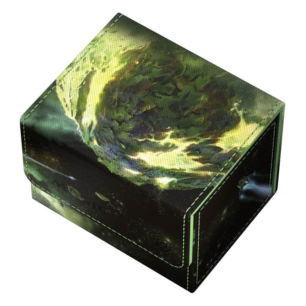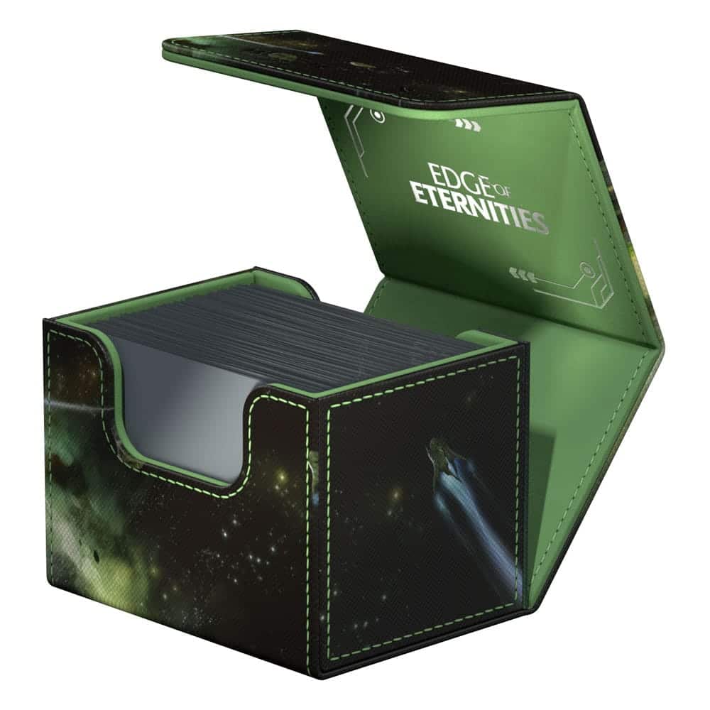 The Sidewinder 100+, made of durable Xenoskin material, holds up to 100 double-sleeved cards in Ultimate Guard sleeves and is the perfect deck box for Commander/EDH decks. Printed in full color with officially licensed artworks from Magic: The Gathering’s “Edge of Eternities” set, Ultimate Guard’s Sidewinder deck boxes with their strong magnetic closure and quality microfiber inner lining are a safe and reliable storage place for MTG decks and individual trading cards.