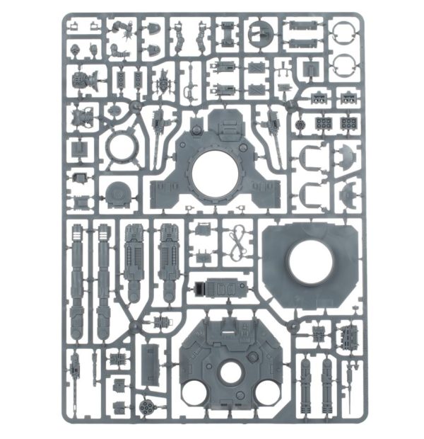 This multipart plastic kit is comprised of 150-components. It can be assembled with or without a gunner, who can be built scanning with an auspex or with his hands on the trigger of the pintle-mounted ironhail heavy stubber. There are also eight separate pieces of optional stowage and two antennae that can be used to decorate the vehicle as desired. The kit is supplied with a Citadel 100mm Round Base and clear hover stand, which can be set at an angle, adding a certain degree of camber to your model.