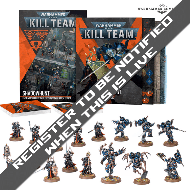 The Necrons have such ancient and complex technologies that they can exert limited control over the very forces of time, yet sometimes their meddling can have unexpected consequences – like a portal opening up to a Kill Team release from the distant future. For some reason their temporal gateways are always kind of blurry and at a strange angle, so Warhammer Community has engaged our top prognosticators to bring you a clear look at the box – Kill Team: Shadowhunt.