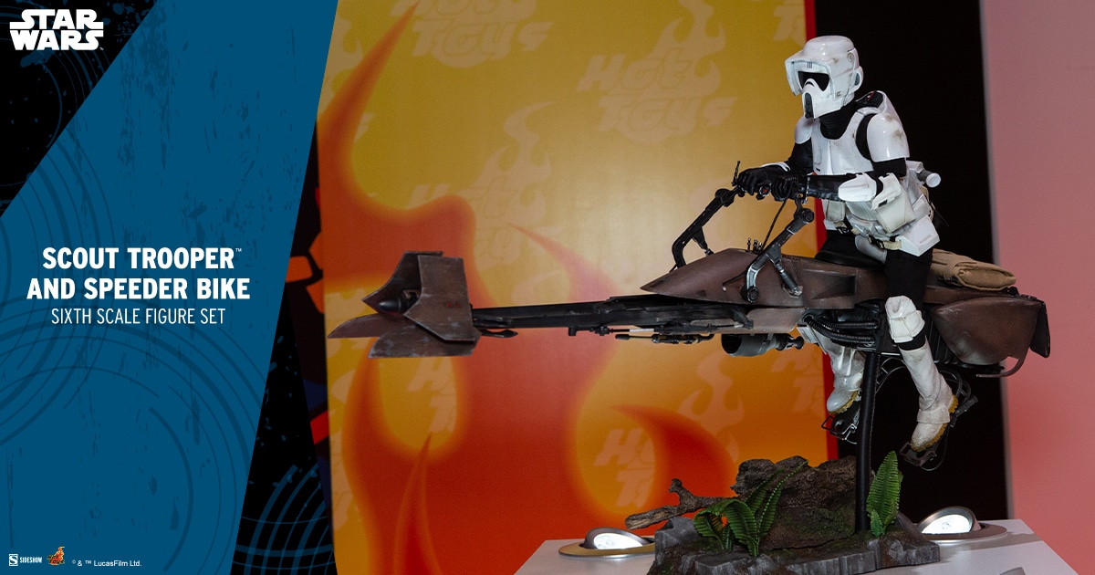 Sideshow and Hot Toys presents the Scout Trooper™ and Speeder Bike Sixth Scale Figure Set. This Star Wars piece is featured during Sideshow Con 2021. Register for updates on pre-order information.