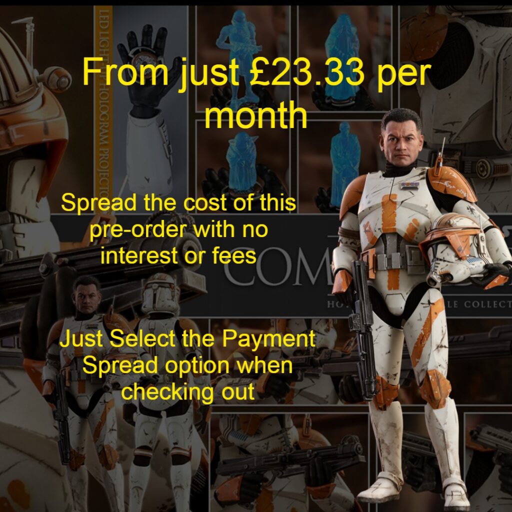Skillfully created based on the appearance of Clone Commander Cody in the movie, the sixth scale collectible figure features a newly developed head sculpt with amazing likeness, a meticulously crafted Clone Trooper armour and helmet with weathering effects, different styles of blasters, interchangeable right arm with LED light-up hologram projector, a jetpack, a variety of miniature hologram figures, and a sand-themed figure base.