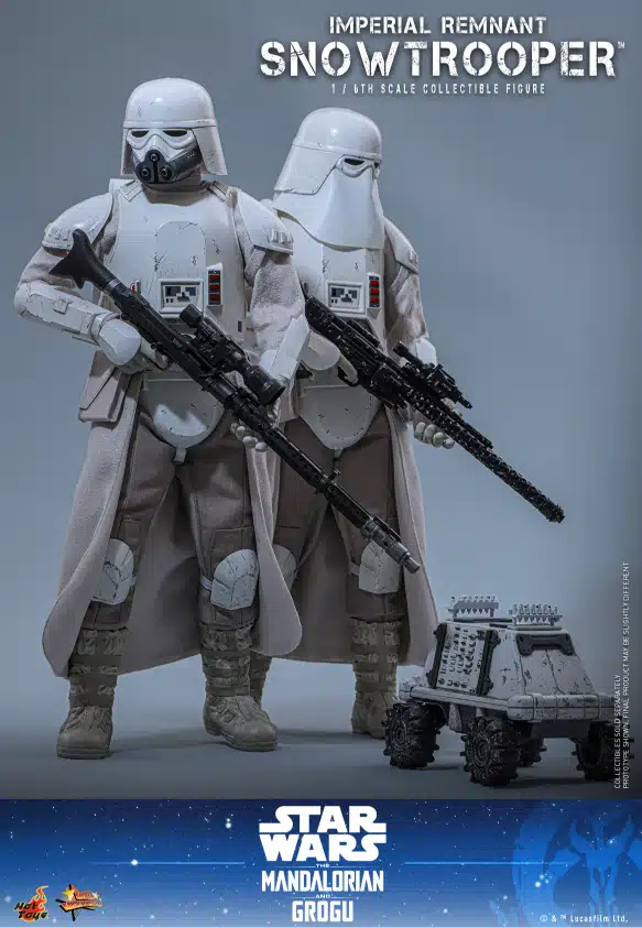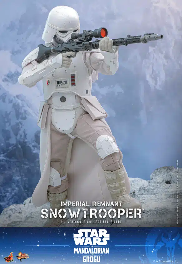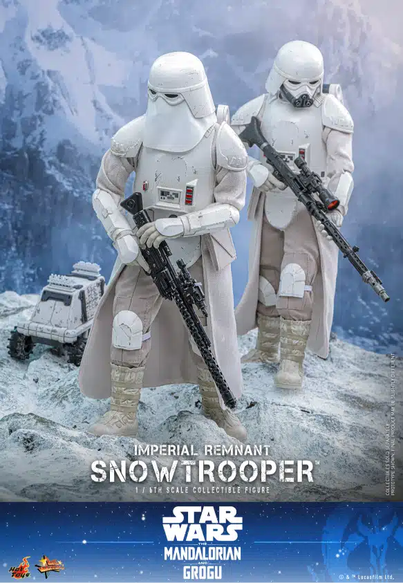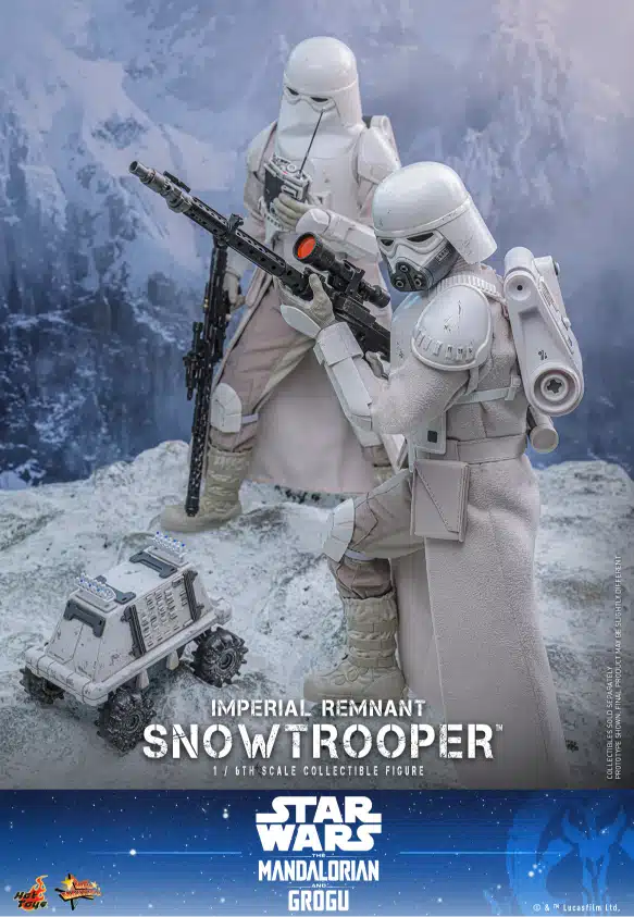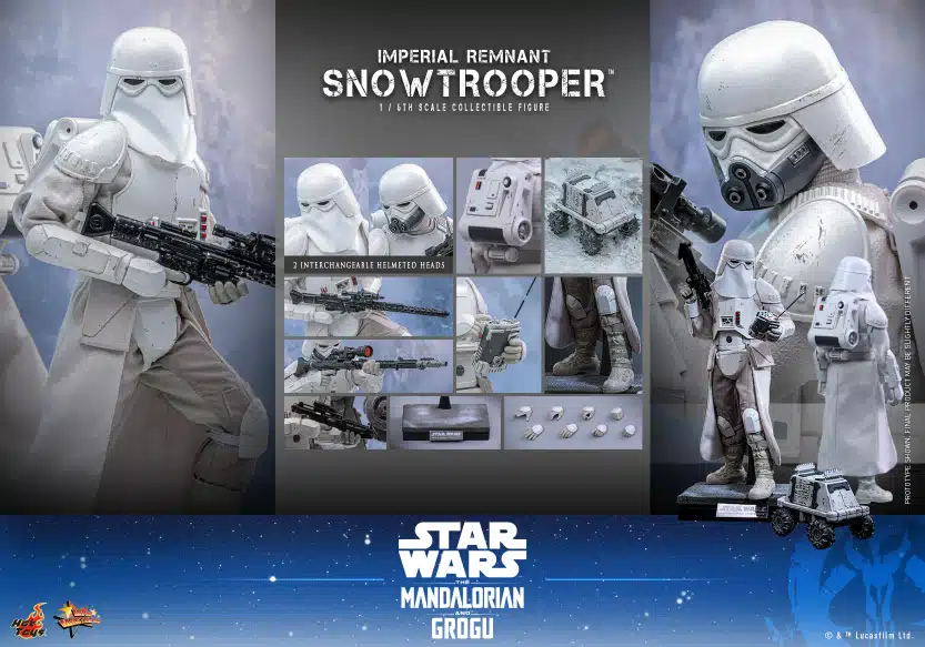 To celebrate the upcoming release of the highly anticipated Star Wars: The Mandalorian & Grogu™, Hot Toys is thrilled to announce the 1/6th scale Imperial Remnant Snowtrooper™ Collectible Figure based on the film. The figure features two detailed Imperial Remnant Snowtrooper helmeted heads, including one with a soft plastic mask, as well as a newly developed unmasked version that captures the distinct look of the Imperial survivor.