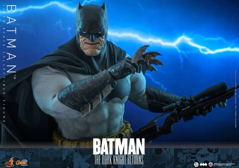 Inspired by Batman’s appearance in “Batman: The Dark Knight Returns,” this meticulously crafted sixth scale figure features a newly developed body with 30 points of articulation that portrays Batman’s muscular physique, and a masked head with interchangeable lower parts of face. The collectible figure also comes with a specially tailored Batsuit with a large Bat symbol and an attached wired cape, a utility belt with weathering effects, Batarangs, a rifle and a specially designed figure stand with character nameplate.