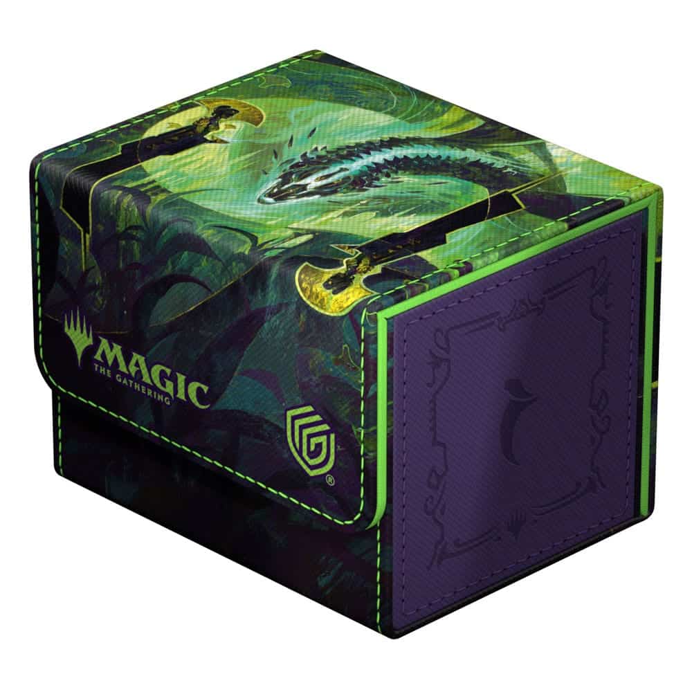 The Sidewinder 100+ made from durable Xenoskin material holds up to 100 double-sleeved or 120 single-sleeved cards, which are kept secure in the deck box thanks to a strong magnetic closure and soft microfiber interior. The sturdy, high-quality Xenoskin surface of the Sidewinder is printed in full color with officially licensed artwork from Magic: The Gathering’s Tarkir: Dragonstorm set.