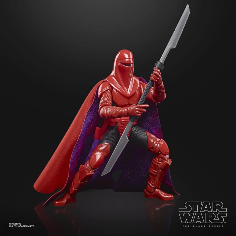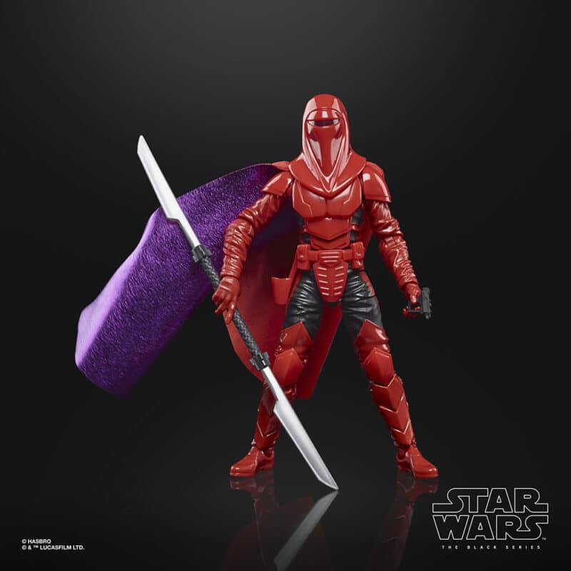 “This Black Series Carnor Jax figure is actually an update to our previously released Black Series Imperial Royal Guard figure,” says Franer. “In the films we never see the Imperial guards without their cloak, so we based the figure’s undersuit on Carnor Jax’s outfit. Now, it’s worked out great to make this update and create this Carnor Jax Black Series figure. He comes with brand new soft goods which feature a striking purple on the interior of the cloak and his iconic double ended vibroblade. We also wanted to pay homage to the cover art for this collection, so we tried to recreate that look as closely as possible for this figure.”