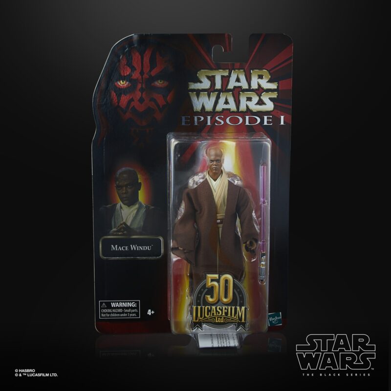 Recall intense moments from the Star Wars Galaxy with this Star Wars The Black Series Lucasfilm 50th anniversary 6-inch-scale Mace Windu figure with Lightsaber accessory, featuring premium deco across multiple points of articulation.