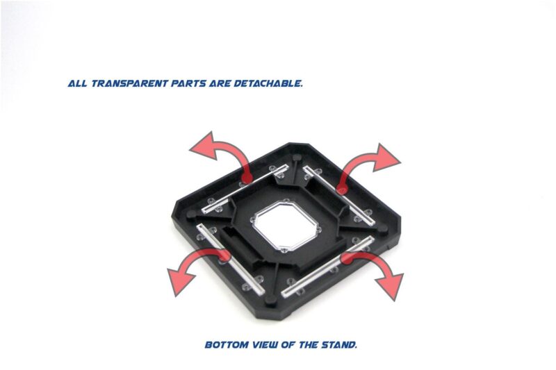 – Supporting pole is movable to left and right along the track so you can adjust the display object’s position flexible.