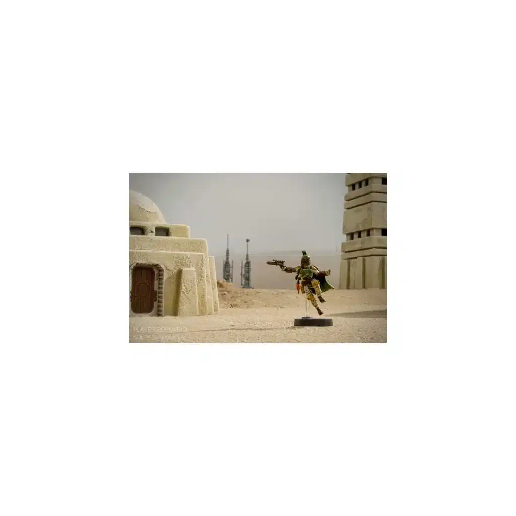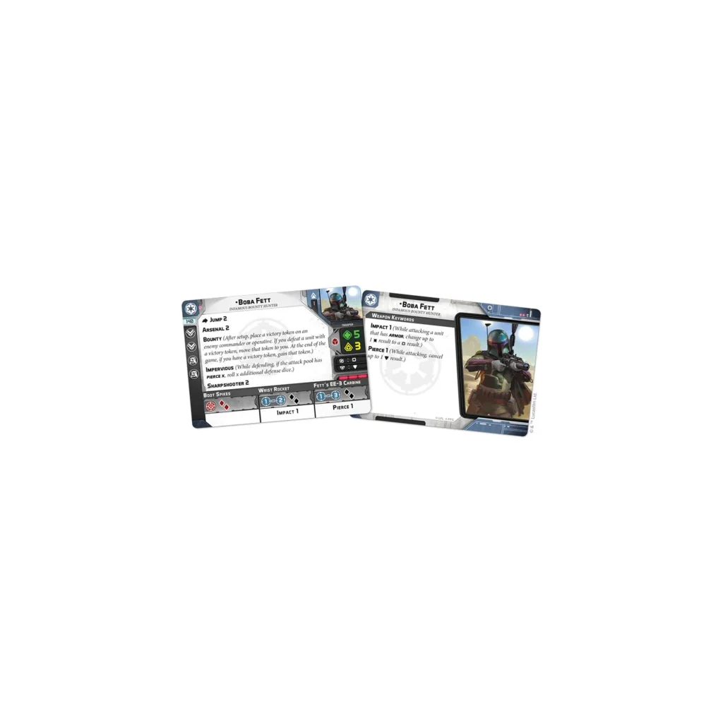 “A cunning bounty hunter who considers all the angles, deploy Boba Fett and his dirty tricks into your Imperial army! Comes with an unpainted miniature, three command cards and three upgrade cards.”