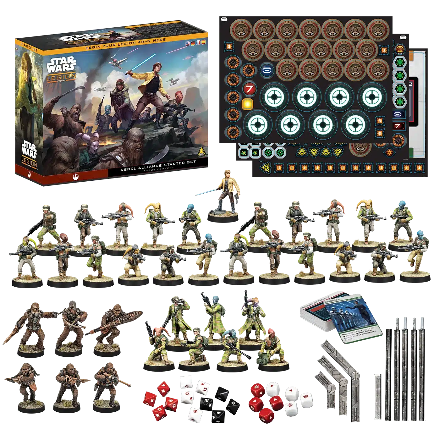 Join the struggle against the Galactic Empire with the Rebel Alliance Starter Set. Lead the charge with the legendary Luke Skywalker, brave Rebel Troopers, and fierce Wookiee Warriors. Take the fight to the Empire and turn the ride to restore peace across the galaxy. The Rebellion Alliance Starter Set contains a 600-point Recon-level army and all the dice, templates, tools, and tokens a player needs to begin playing their first games of Star WarsTM: Legion. Rise up against tyranny, and may the Force be with you as you embark on your Star Wars: Legion adventure in a galaxy far, far away!