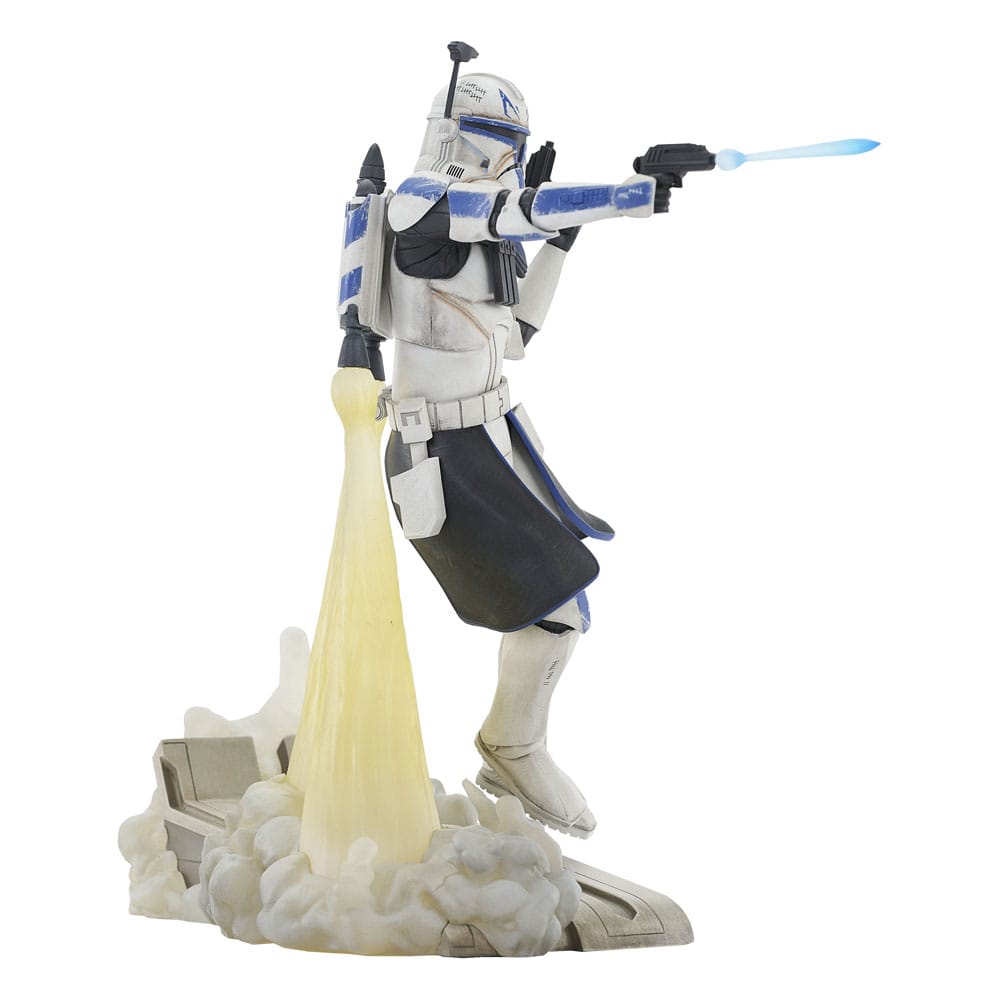 Captain Rex blasts into action in the newest Star Wars Gallery PVC statue! Lifting off with the thrusters of his jetpack at full power, firing one blaster with his other blaster at the ready, this dynamic statue of Captain Rex is based on his appearance in The Clone Wars, and features detailed sculpting and paint applications. It comes packaged in a full-color window box.
