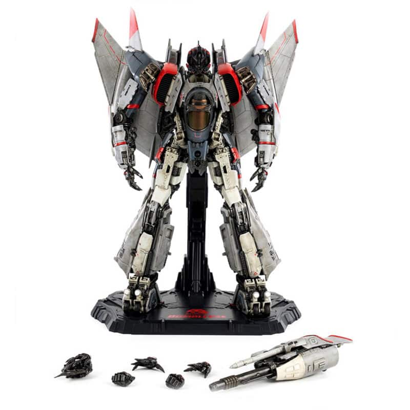 DLX Blitzwing stands 10.6inches tall and features screen accurate detailing, 51 points of articulation, LED illuminated eyes, and die-cast metal parts! Blitzwing comes fully equipped to hunt and seek Bumblebee with his interchangeable Null-ray Blaster and the surgically precise Electron Spike Blade!